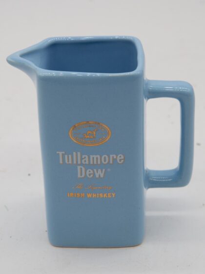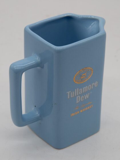 A blue glazed ceramic water jug for Tullamore Dew Irish Whiskey.