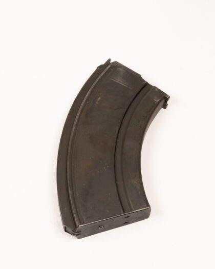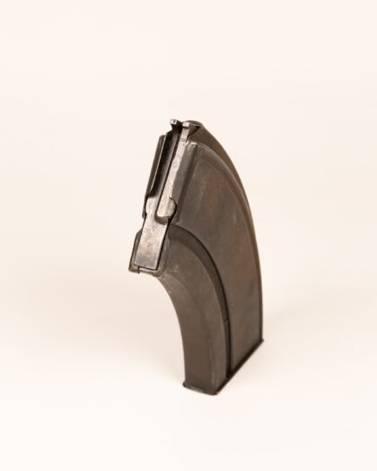 Authentic bren gun magazine. Durable black metal finish with signs of wear. Ideal for collectors. Functional and robust.