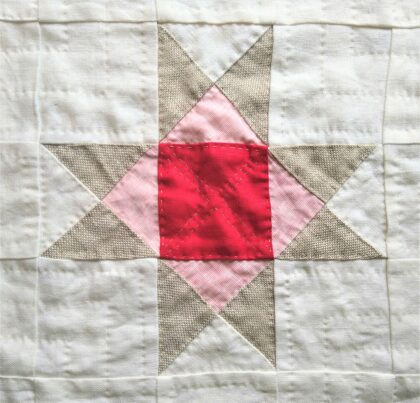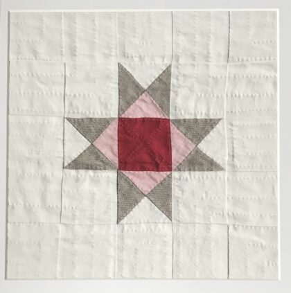 Beautiful new quilt-works by local textile artist. Small, framed studies in quilt design and traditional stitching methods.