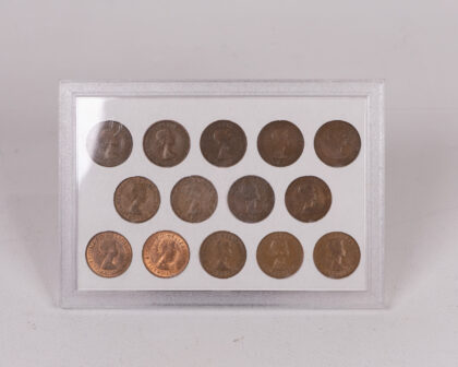 Complete set of Britannia halfpennies (1853-1967) in display case. A piece of British numismatic history!