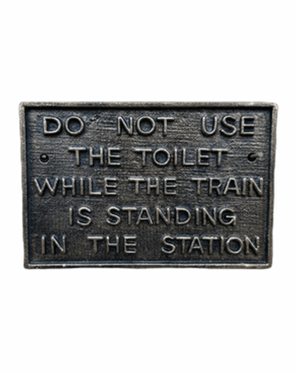 This cast iron railway sign bears the message "Do Not Use The Toilet While The Train Is Standing In The Station". Made from durable cast iron and showcasing a stylish bronze finish, this plaque adds a touch of railway retro wherever it is displayed. The raised lettering and border makes the message stand out, while predrilled holes make it easy to hang on a wall of your choice. Sure to be a hit with vintage decor and railwayana enthusiasts alike.
