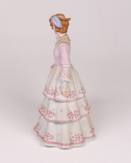 Brooks & Bentley porcelain figurine of a Victorian lady with girl. Pink and white layered dress, subtle floral pattern. Excellent detail.