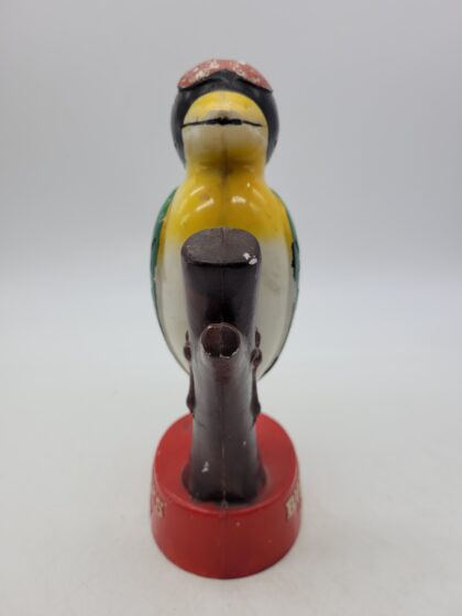 A plastic advertising display for Bulmer's Cider in the form of woodpecker on a branch.