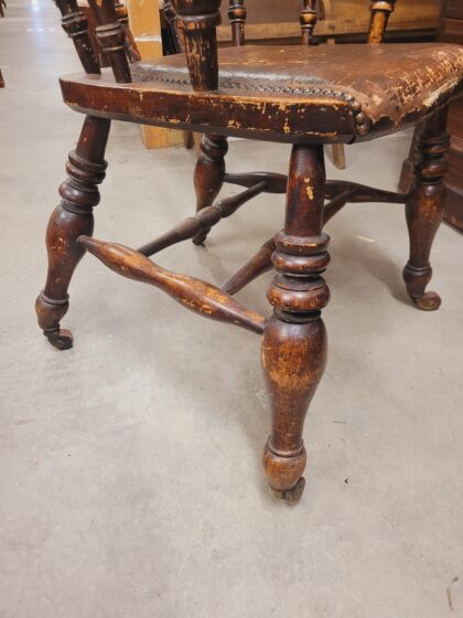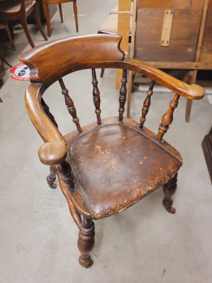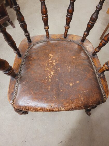 An oak desk chair on castors with a beautiful patina and cushion seat. All original - no upholstery.