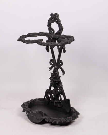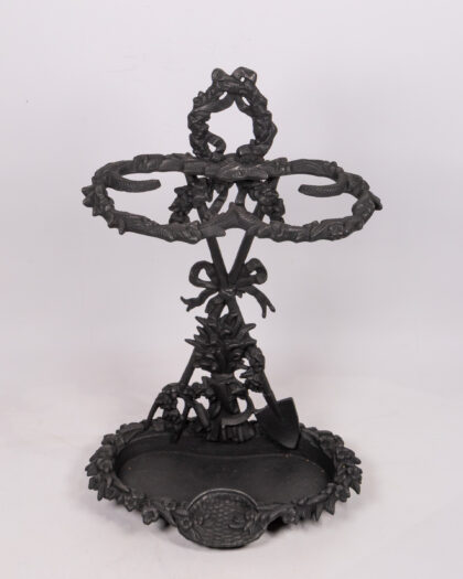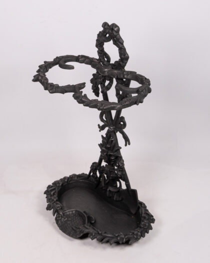 Decorative black cast iron umbrella stand. Vintage design with floral patterns and a water-catching base. Perfect for the home!