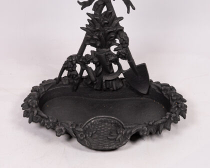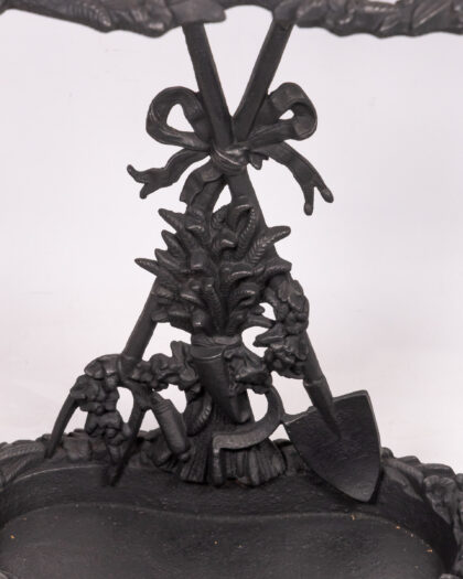 C1900s Black Cast Iron Umbrella Stand with Ornate Floral Details
