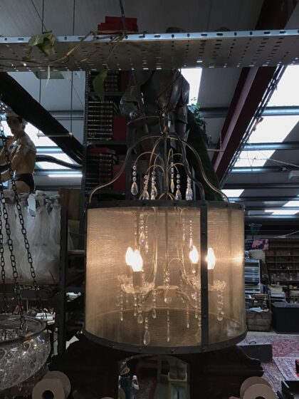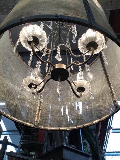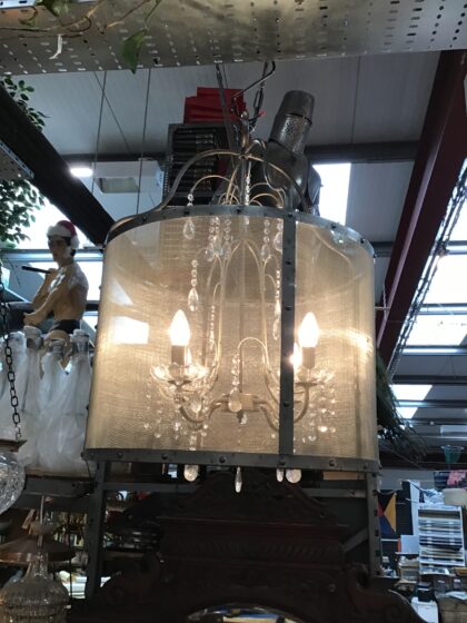 Large caged chandelier, 57cm diameter, with about 105cm drop.