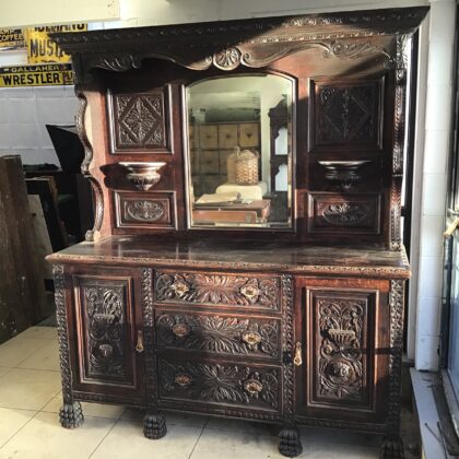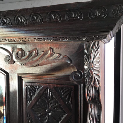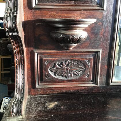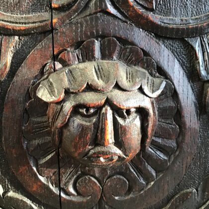 A late Victorian piece, made from oak and in the Jacobean style, that was back in vogue in the "Big houses" in the late victorian period. This piece came from a large estate in Donegal along with a seperatly listed but equally impressive coat rack.