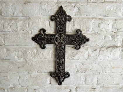 The most striking design element of this cast iron cross is its intricate filigree pattern design. Showcasing the highest levels of metalwork craftsmanship, this cross displays an ornate openwork pattern, which contrasts beautifully with the cross' sturdy cast iron construction. Finished in a deep bronze colour reminiscent of Gothic and Victorian styles, this cross is suited for both indoor and outdoor settings. An eye-catching design indeed!
