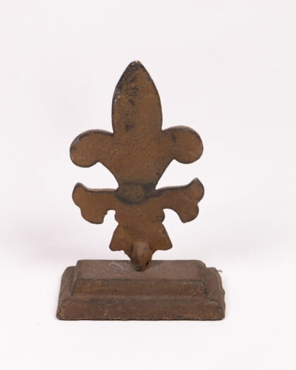 Vintage cast iron Fleur-de-Lis bookend, a stylish and sturdy piece for any bookshelf. Rustic finish, excellent condition.