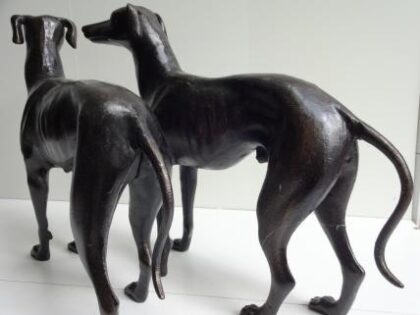 Pair of new cast iron greyhound figures. Beautiful black/brown finish. Ideal for indoor or outdoor display.