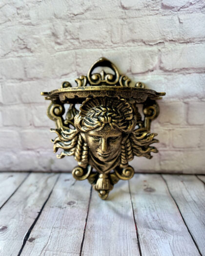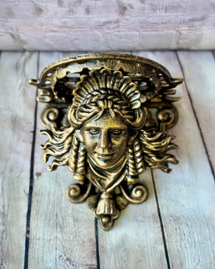 Cast iron wall-mounted plant stand featuring a classical lady head design with antique bronze finish. Suitable for indoor/outdoor use.