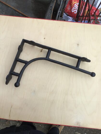 Rustic black cast iron wall shelf bracket. Vintage-style, sturdy, and ideal for adding a touch of industrial charm to any room.