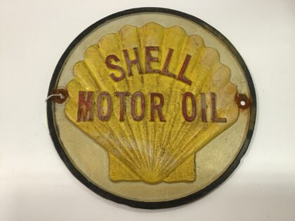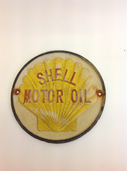 8 inches in diameter, heavy and solid. Two mounting holes. Some natural weathering