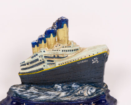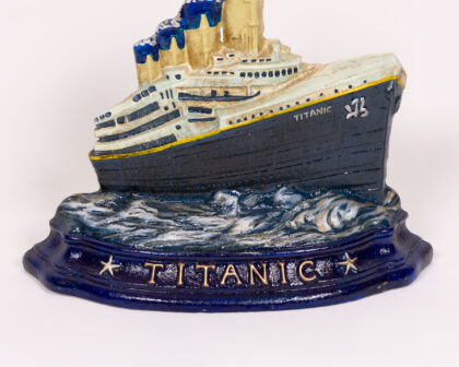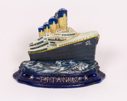 This Titanic-themed cast iron doorstop provides a practical and interesting addition to any living space.