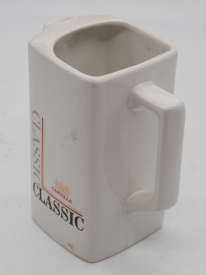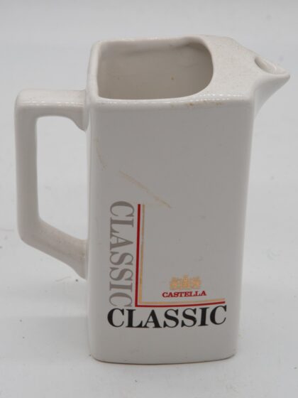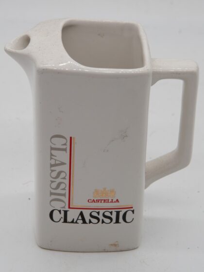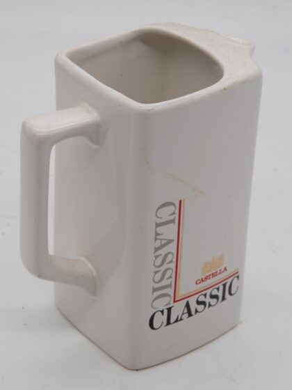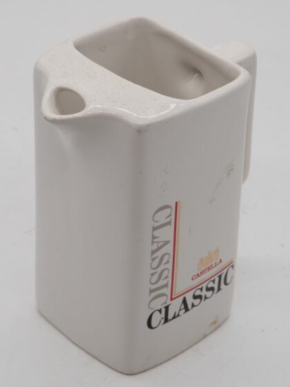 A white ceramic water jug for Castelle Classic Cigars. Made by HCW Prompots and bears red backstamp to base.