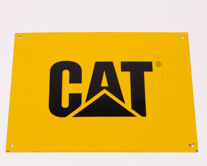 Original CAT logo sign, ideal for collectors or as vintage industrial wall art. Features the iconic logo. Perfect for home or office decor.
