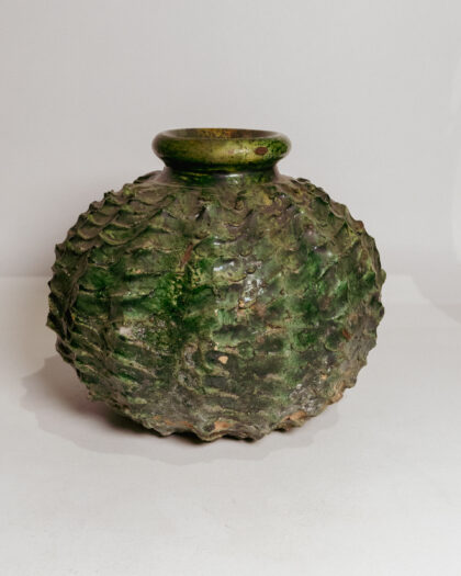 Journey to the western edge of the Sahara desert and you’ll find the village of Tamegroute — an historic oasis where Morocco’s iconic Tamegroute pottery has been produced for centuries. There, following these age-old, closely-guarded techniques, this gorgeous pottery is handcrafted by skilled local artisans in a small, family-owned workshop. The process starts with clay dug from the nearby Draa riverbed, which is molded into unique, abstract shapes and coated in a glaze made from a secret concoction that includes magnesium and copper oxide. Once glazed, each piece is fired in a blazing hot wood-burning oven (we’re talking over a thousand degrees!) for more than twenty-four hours. Something about the alchemy of that specific local clay, dipped in that particular glaze and slowly fired at that extreme temperature results in this Zohra Pottery’s distinctive shade (or, more accurately, shades) of green. With their vibrant hues, earthy texture and sculptural, perfectly imperfect silhouettes, they’re great for bringing a pop of color and global style to any room of the house.