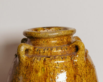 Journey to the western edge of the Sahara desert and you’ll find the village of Tamegroute — an historic oasis where Morocco’s iconic Tamegroute pottery has been produced for centuries. There, following these age-old, closely-guarded techniques, this gorgeous pottery is handcrafted by skilled local artisans in a small, family-owned workshop. The process starts with clay dug from the nearby Draa riverbed, which is molded into unique, abstract shapes and coated in a glaze made from a secret concoction that includes magnesium and copper oxide. Once glazed, each piece is fired in a blazing hot wood-burning oven (we’re talking over a thousand degrees!) for more than twenty-four hours. Something about the alchemy of that specific local clay, dipped in that particular glaze and slowly fired at that extreme temperature results in this Zohra Pottery’s distinctive shade (or, more accurately, shades) of green. With their vibrant hues, earthy texture and sculptural, perfectly imperfect silhouettes, they’re great for bringing a pop of color and global style to any room of the house.