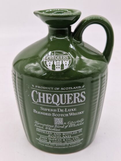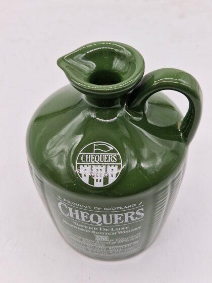A glazed ceramic flagon for Chequers Blended Scotch Whisky.