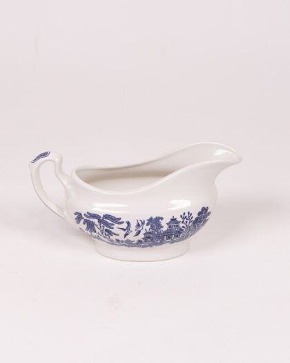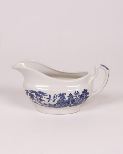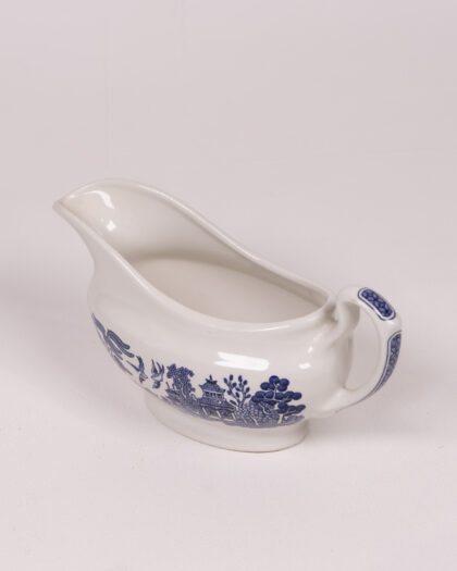 Churchill England Willow gravy boat with traditional blue Willow pattern design. Microwave and dishwasher safe. A charming addition to any table.