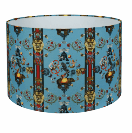Dramatic mood lighting is the easiest way to create instant atmosphere in your home, but ramp up the theatrics further with this Circus Circus Drum Lampshade in Sailor Town, which are made in the UK to order. Made using stiff translucent poly fabric, the inner lining of the lampshades is fire rated for safety, and the fitting ring fits standard UK light fixtures for both ceiling and table/standing lamps. The USA table lampshade is for a harp finial fitting.