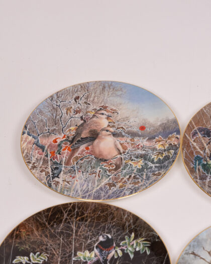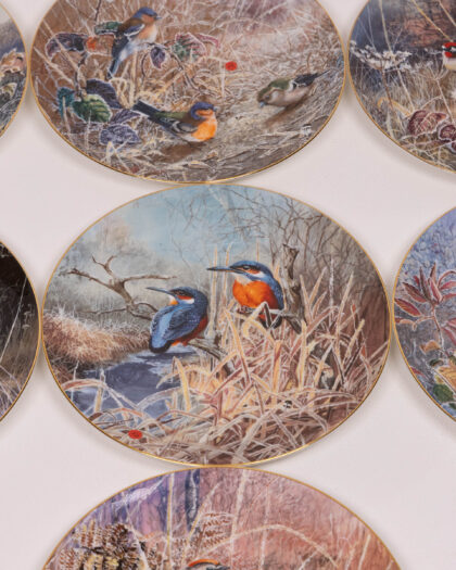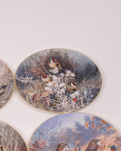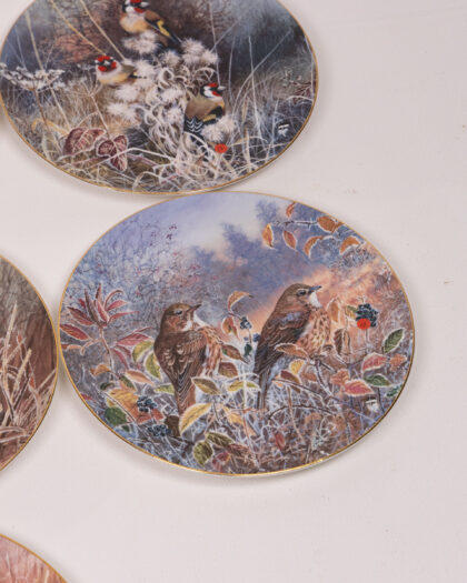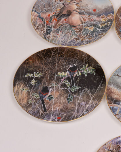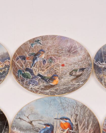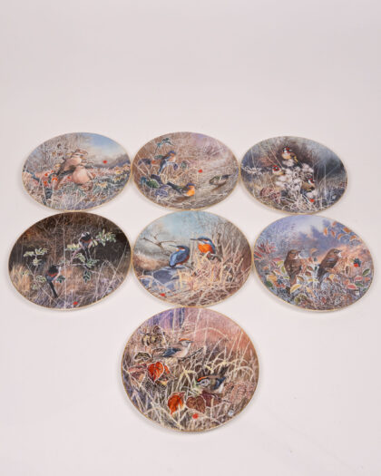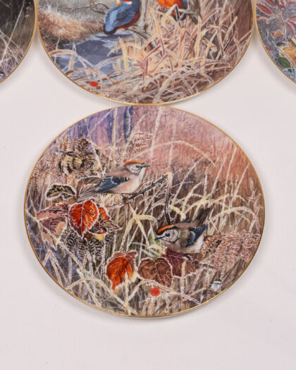 Set of seven 'Coalport Goldcrests' decorative plates, part of the 'Frosty Mornings' limited edition collection (1994) featuring different birds.