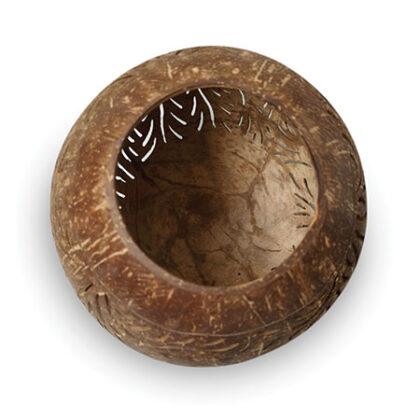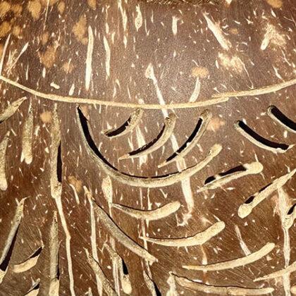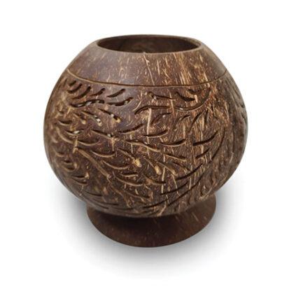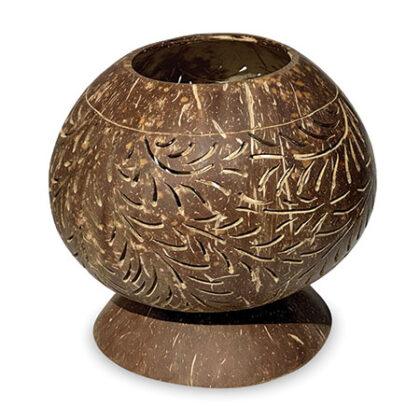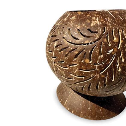 In Indonesia, coconut shell is often used as fuel for beach barbeques. Here it’s been recycled into a spherical bowl on a stand, with a beautifully hand carved design - perfect for holding pot pourri or dried flowers, or even to throw some patterned shadows with an led candle.