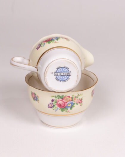 Vintage Colclough bone china tea set. Floral design with gold trim - teacup, saucer and milk jug. Ideal for display or use.