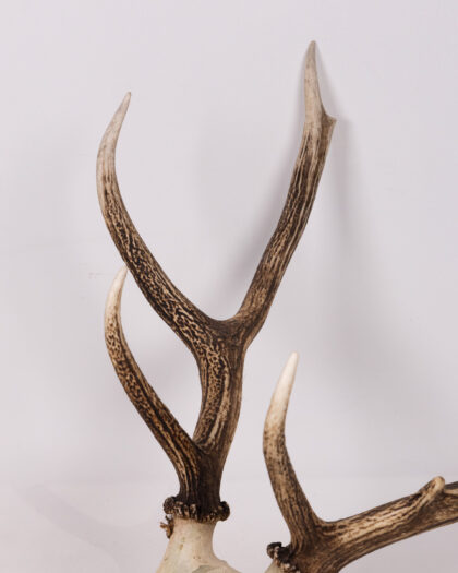 Real deer skull with attached antlers, a unique decorative piece for adding a rustic, natural touch to your home.