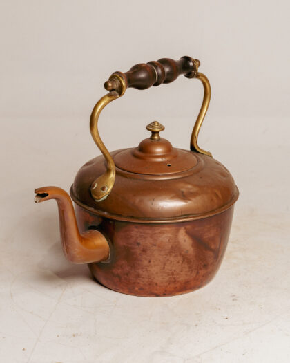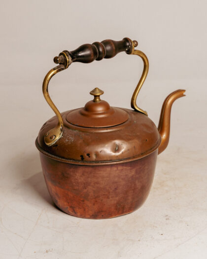 Copper kettle with wooden handle