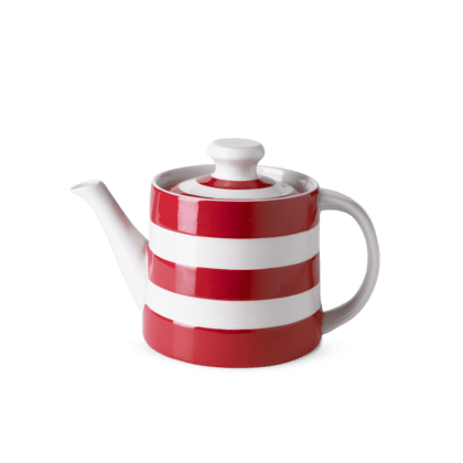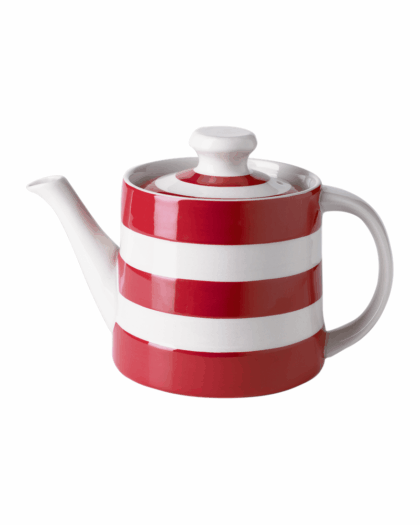 Classic Cornishware teapot in red and white stripe. Handmade in England. Microwave and dishwasher safe. Perfect for tea lovers!