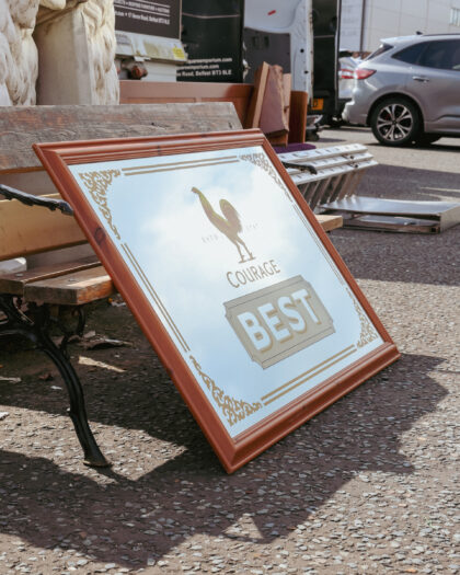 A large, framed advertising mirror for Courage Best Bitter beer.