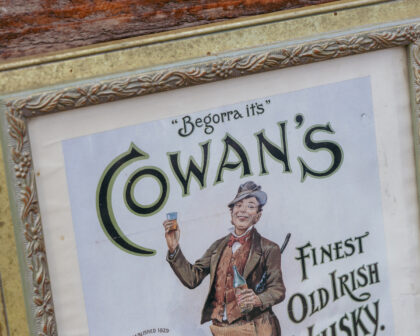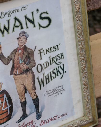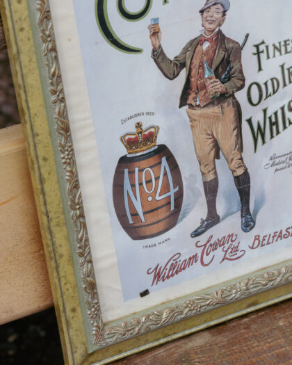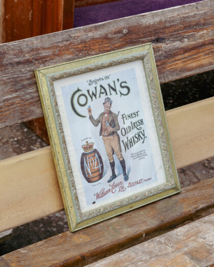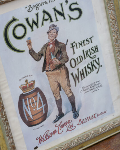 A framed print for Cowan's Old Irish Whisky Belfast.