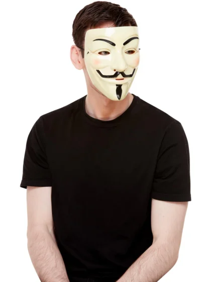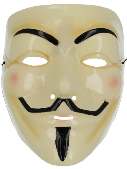 Iconic Guy Fawkes mask. Cream plastic with black features. Ideal for fancy dress, protests, or collectors.