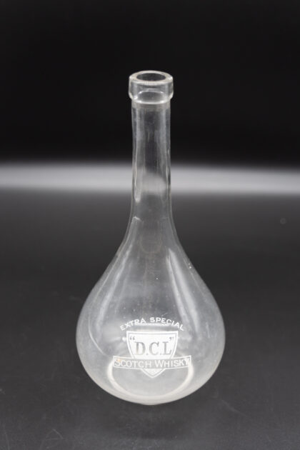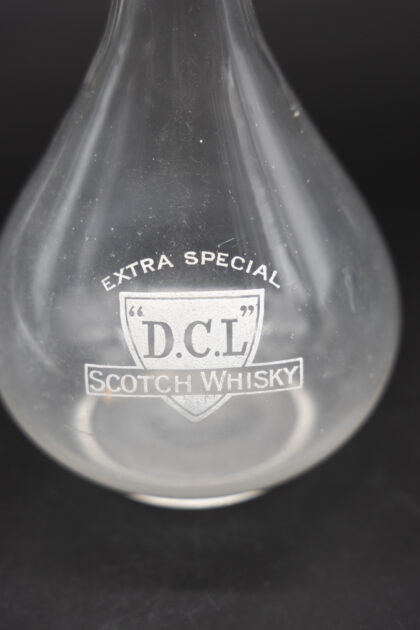 A glass decanter with applied lettering for D.C.L Extra Special Scotch Whisky.