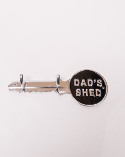 This "Dad's Shed" key hook is a lovely addition to any entrance, hallway, shed or workshop. Crafted from high-quality aluminium and polished to a mirror-style finish, this key hook combines style with the need to keep your keys in roughly the same place!! Taking the shape of a stylised key, the fob features the words "Dad's Shed" at the top, while the blade of the key has two firm hooks. A distinctive and charming product, this key hook is perfect for dads and their sheds everywhere.