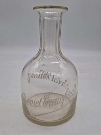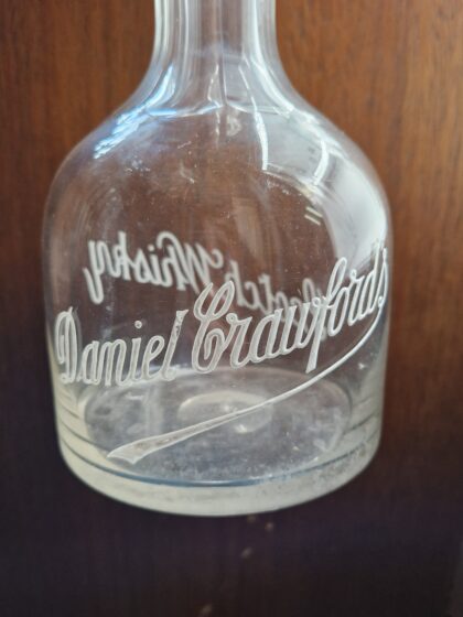 A glass decanter for Daniel Crawford's Scotch Whisky.