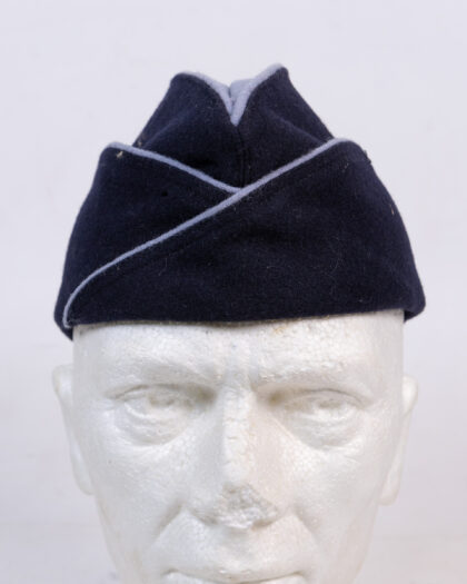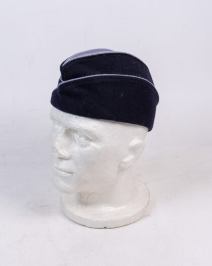 Dark Blue Wool Cap with Grey Trim. Simple, versatile design. Excellent condition for collectors or everyday wear. A stylish piece.