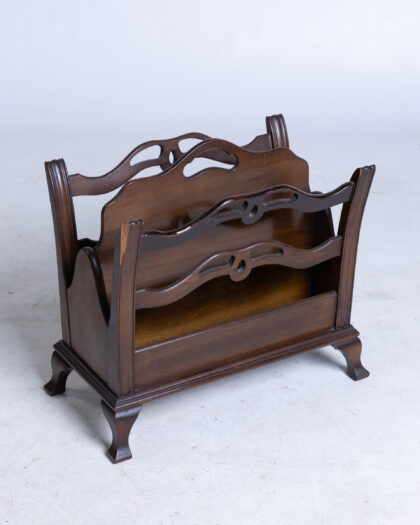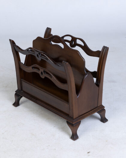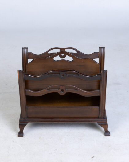 Dark wood magazine rack with tiered storage & ornate design. Great way to organise mail, magazines or files with timeless style.