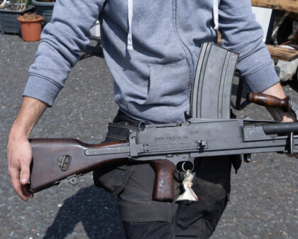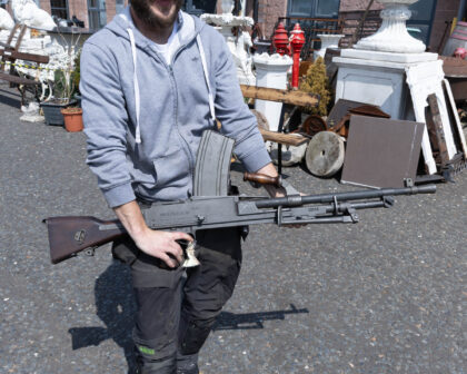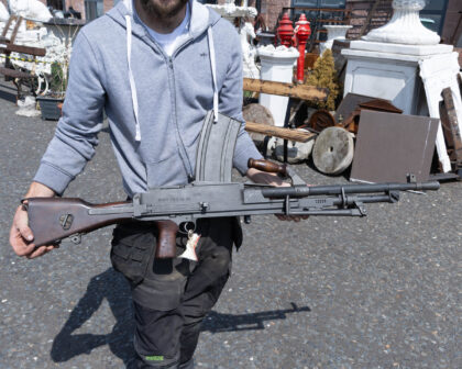 Deactivated Italian Breda Bren .30-06 Calibre Light Machine Gun. Matching Numbers, BMB - Breda Meccanica Brescia manufacture and post war dated in excellent deactivated condition. Latest EU spec, with moving trigger, selector, and cocking handle (under spring pressure). These little known Breda made Brens were made in Italy from 1959 until the mid 1970’s for the Corpo Delle Guardie, a blanket term for paramilitary police, who are responsible for guarding all government infrastructure, bodyguards, strikes on the Mafia, and suppression of political radicals. They were only ever made in .30-06 Calibre but are marked 7.62 This is because the Italians use the metric system, and .30 calibre in metric is 7.62mm. Just slightly confusing! The Bren was a modified version of a Czechoslovak-designed light machine gun, the ZB Vz. 26, which British Army officials had tested during a firearms service competition in the 1930s. They were loved by the troops who used them as they rarely went wrong and withstood all conditions equally well. They were very accurate and because they could fire in semi auto, they were often used to pick off long range targets. It was such an effective design that in modified form, it served in the British armed forces until very recently. They can still be found in Africa and work perfectly well to this day. This gun is deactivated in the United Kingdom and holds proof marks and a certificate stating that the weapon has been deactivated correctly.