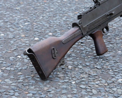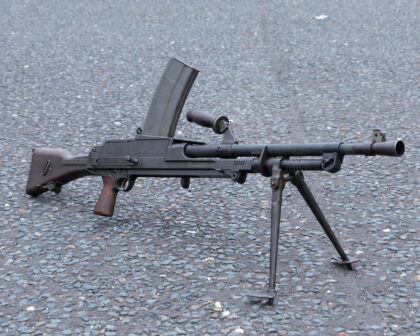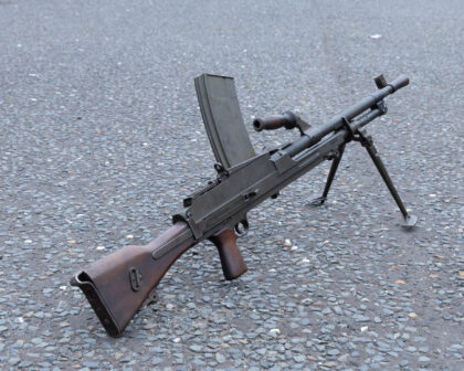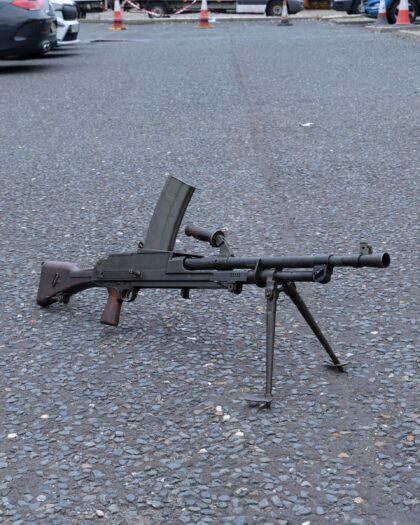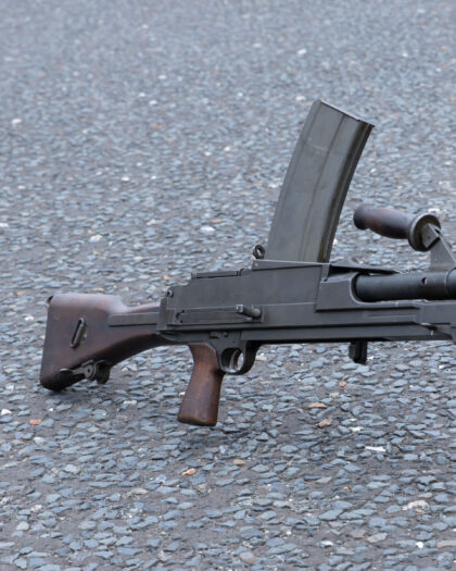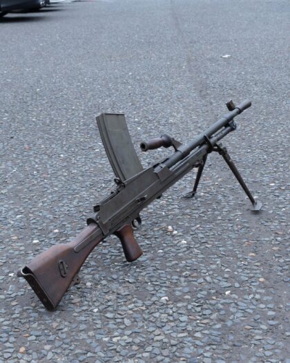 Deactivated Breda Bren Mk II Light Machine Gun in Original Wooden Case. A classic piece of British military history, ideal for collectors and enthusiasts.