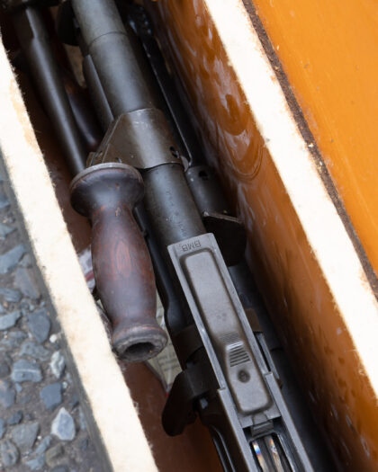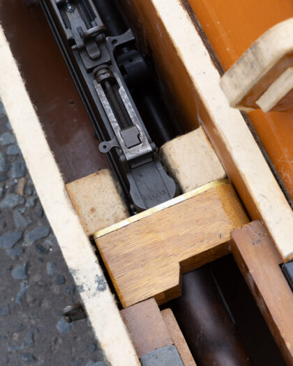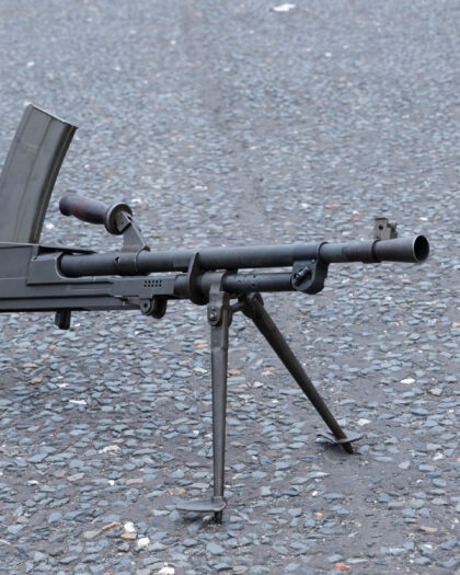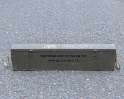 Deactivated Italian Breda Bren .30-06 Calibre Light Machine Gun. Matching Numbers, BMB - Breda Meccanica Brescia manufacture and post war dated in excellent deactivated condition. Complete with Transit Chest, Spare matching number Barrel and Cleaning Rod. Latest EU spec, with moving trigger, selector, cocking handle (under spring pressure). These little known Breda made Brens were made in Italy from 1959 until the mid 1970’s for the Corpo Delle Guardie, a blanket term for paramilitary police, who are responsible for guarding all government infrastructure, bodyguards, strikes on the Mafia, and suppression of political radicals. They were only ever made in .30-06 Calibre but are marked 7.62 This is because the Italians use the metric system, and .30 calibre in metric is 7.62mm. Just slightly confusing! The Bren was a modified version of a Czechoslovak-designed light machine gun, the ZB Vz. 26, which British Army officials had tested during a firearms service competition in the 1930s. They were loved by the troops who used them as they rarely went wrong and withstood all conditions equally well. They were very accurate and because they could fire in semi auto, they were often used to pick off long range targets. It was such an effective design that in modified form, it served in the British armed forces until very recently. They can still be found in Africa and work perfectly well to this day.