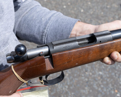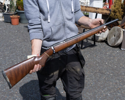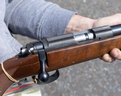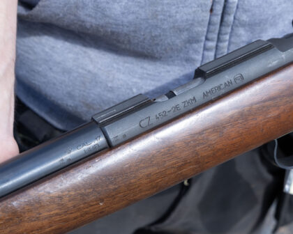 CZ 452-2E ZKM American .17 HMR Bolt Action Rifle. Wooden stock with checkered grip, blued barrel & receiver. Made in Czech Republic.