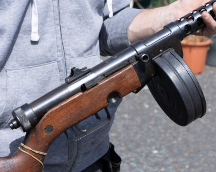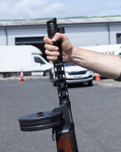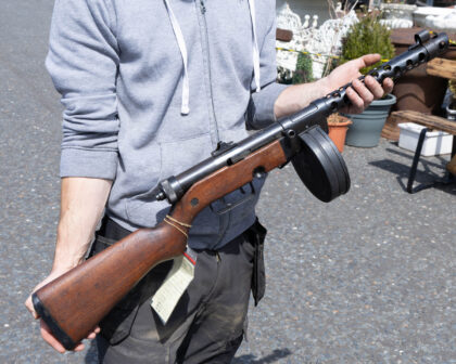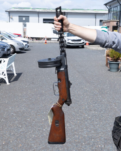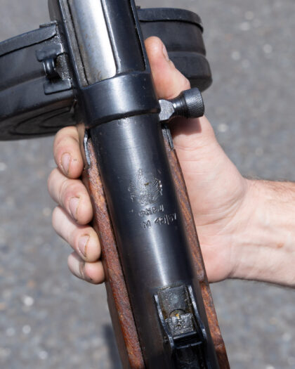 This was the simplified Yugoslavian version of the PPSH 41 that was easier for third world countries to manufacture. The PPSH 41 sub machine gun is one of the iconic classics of WWII. The Soviets learned from their earlier PPD series and listened to the troops who took part in the winter war with Finland. The result was a weapon that was incredibly reliable and capable of shocking firepower when firing bursts from its 71 round drum magazine. It has few parts and can take a lot of punishment. They are still being used in Iraq by private contractors as car guns and they still function perfectly.