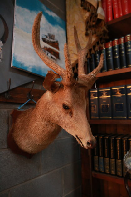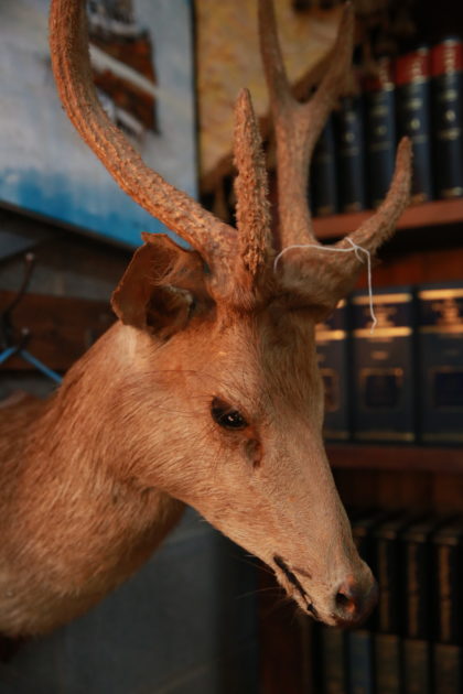 Add a unique and rustic touch to your home with this striking vintage deer head trophy. Featuring distinctive felt antlers, this decorative piece offers a charming and characterful alternative to traditional taxidermy. Mounted on a classic wooden plaque, it's perfect for creating a focal point in a living room, study, or even a themed pub or restaurant. Its vintage appeal and unusual antler texture make it a conversation starter, ideal for collectors of quirky and distinctive decor.