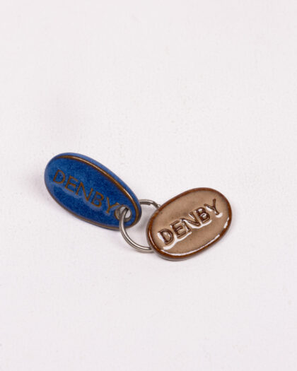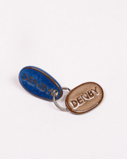 Vintage Denby pottery keyring featuring two ceramic tags, one blue and one brown. Great condition.