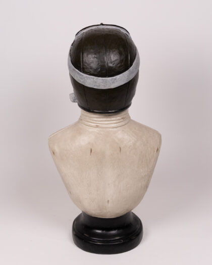 This eye-catching bust features a dog dressed as an aviator, complete with a helmet and goggles. The bust is primarily cream, with black and brown details on the dog's face and helmet. The overall style is somewhat quirky and would make a great addition to any home. It has a black base, and minor imperfections to the painted finish, but nothing detrimental.