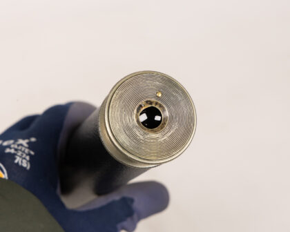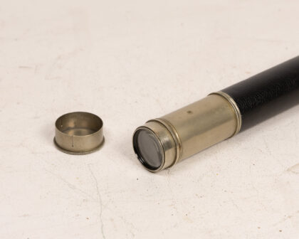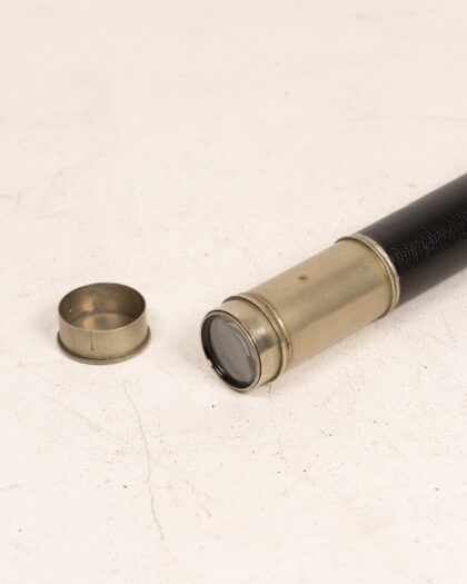 Vintage Dollond London telescope, featuring a black leather wrap and brass accents. A collectible item for astronomy enthusiasts and collectors.