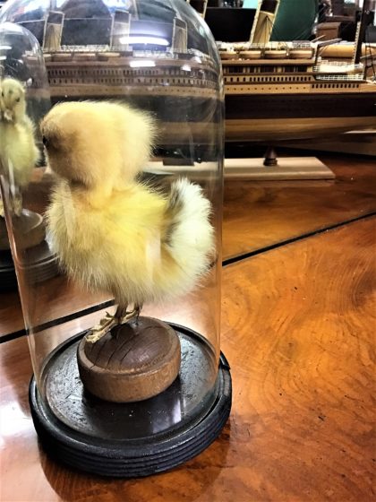 A peculiar little conversation piece. The bell jar stands 23cm tall